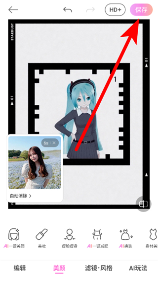 4、换装完成后点击保存,即可完成美颜相机的AI换装操作。