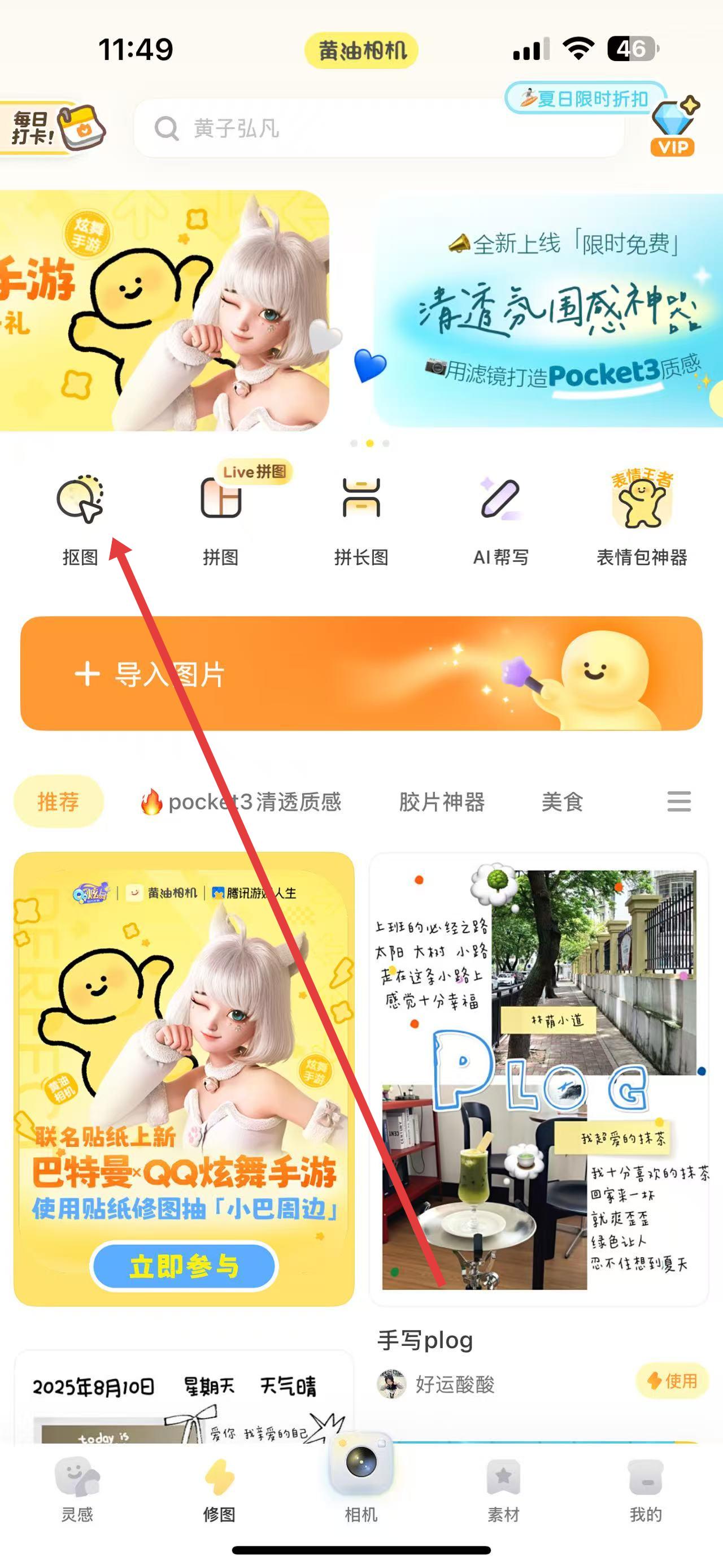 1、打开黄油相机,点击首页的抠图功能按钮。