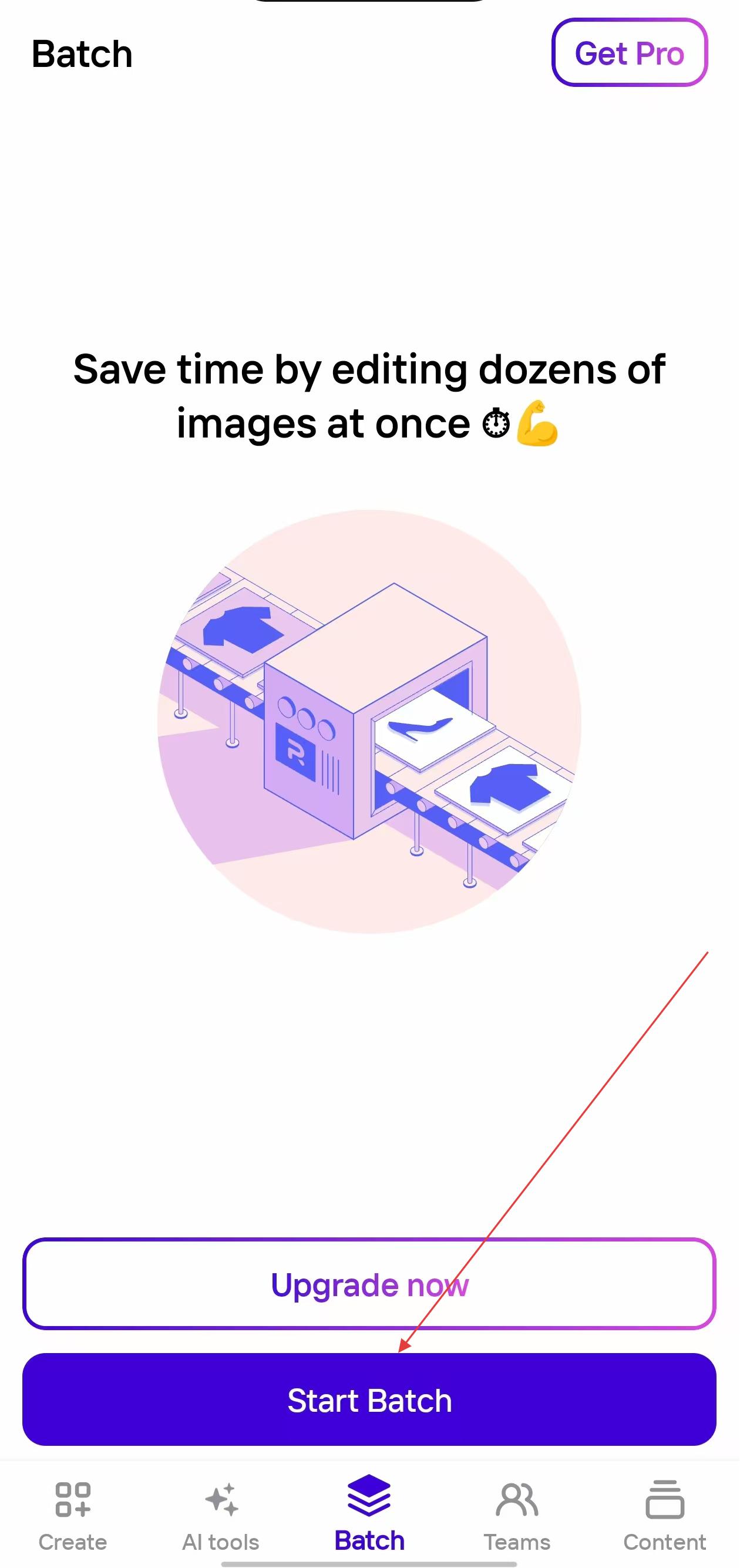 1、打开PhotoroomAPP,进入Batch功能页面,点击下方的Start Batch按钮。