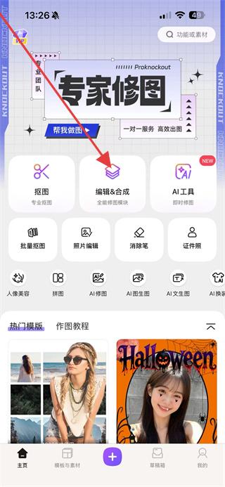 1、打开Photoroom APP,在首页找到编辑&合成选项并点击,进入背景选择页面。