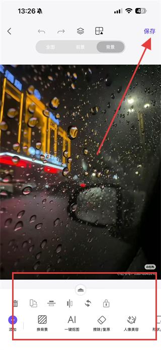 4、背景设置完成后点击保存,即可完成Photoroom的图片背景更换操作。