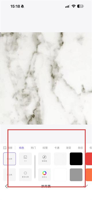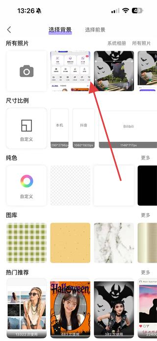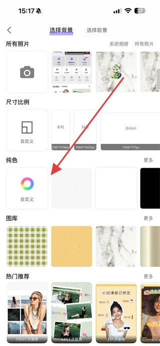2、在背景选择页面选择想要的背景样式可从纯色、图库、热门推荐等分类中选择。