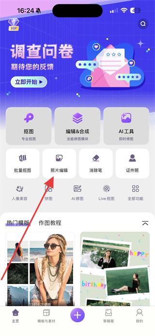 1、打开Photoroom APP,点击编辑&合成,进入图片选择页面。
