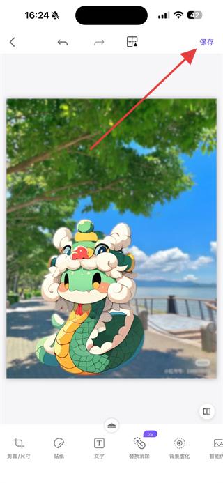 4、编辑完成后,点击右上角保存,完成Photoroom图片的导出操作。