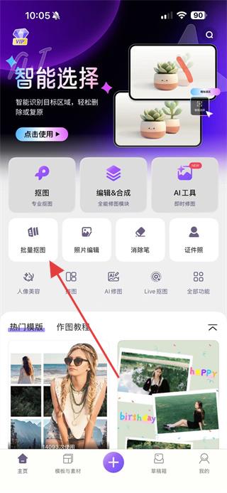 2、在图片选择界面,挑选需要换背景的图片后点击立即抠图,进入抠图编辑页面。