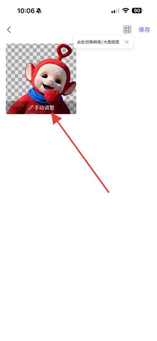 3、在抠图编辑页面,点击手动调整可对抠图区域进行精细调整。