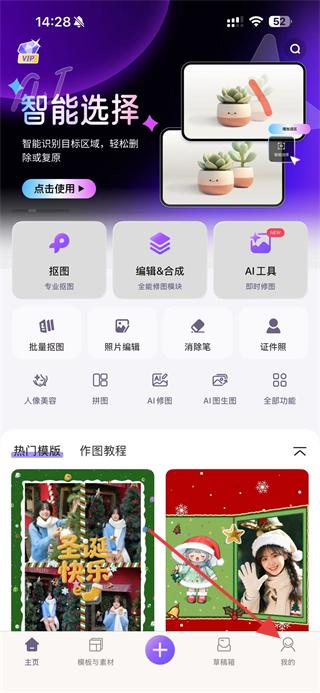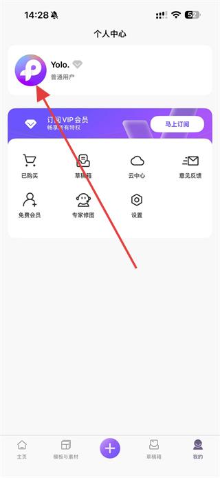 1、打开PhotoRoom APP,点击底部导航栏的我的选项,进入个人中心页面。