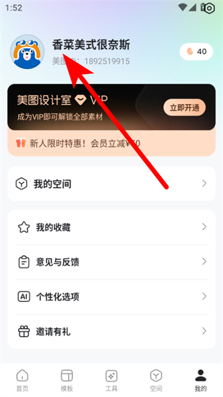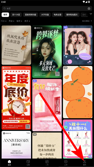 1、打开美图设计室APP,点击右下角我的,进入个人页面。