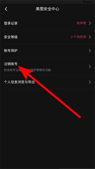 进入美图安全中心页面后点击注销账号,按照提示完成美图设计室账号的注销操作。