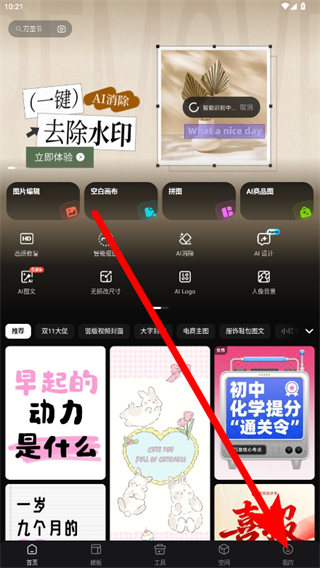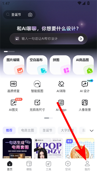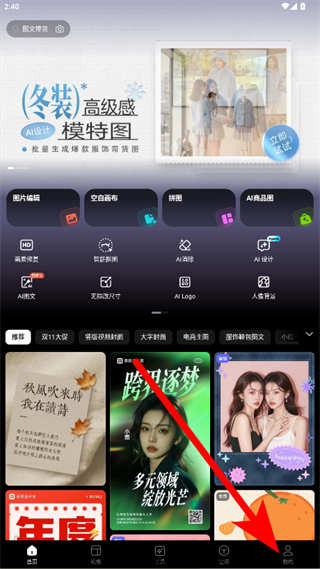 1、打开美图设计室APP,点击右下角我的,进入个人页面。