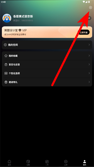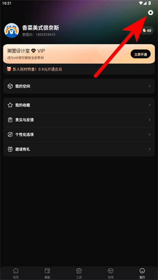 1、打开美图设计室APP,点击底部导航栏的我的选项,进入个人页面。