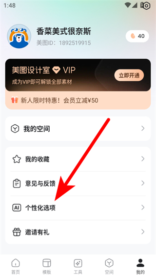 美图设计室怎么关闭个性化设置