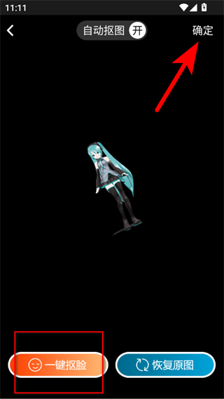 3、图片添加后,可使用一键抠脸等功能进行抠图,完成后点击右上角确定。