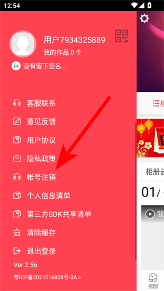 3、在展开的菜单里,找到并点击帐号注销选项,进入账号注销页面。