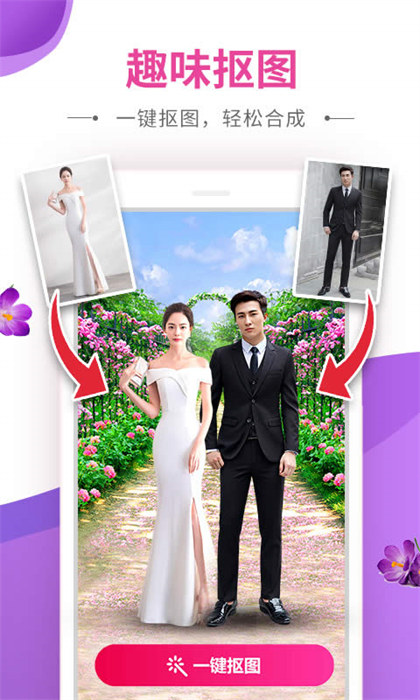 海量模板每天更新,唯美、搞怪、时尚、风景丰富多彩,驾车骑马、划船戏水、飞奔云霄,跟神话里的人物互动、和喜欢的明星合照、到世界各地留影。搭配一键抠图、抠脸把照片完美融入模板背景和动作特效上
