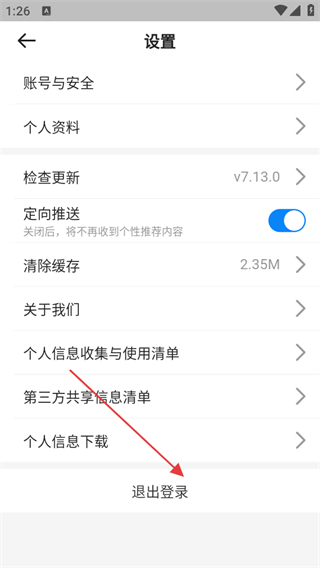 3、在设置界面里,滑动屏幕找到并点击退出登录选项。