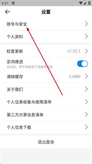 3、在设置页面选择账号与安全选项,进入账号与安全页面。