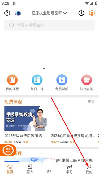 1、打开张博士课堂APP,点击页面底部导航栏我的选项。