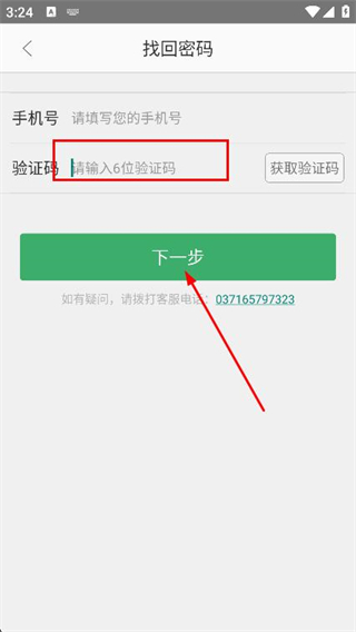 3、填入验证码,点击下一步,按照后续提示设置新密码。