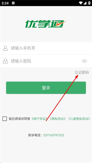 1、打开优学通,点击下方忘记密码,进入找回密码页面。