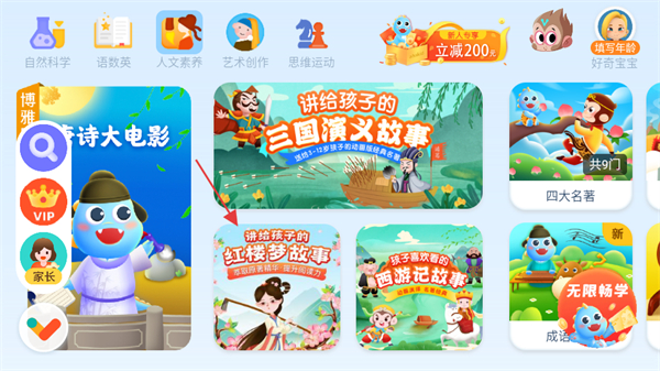 整合海量免费学习资料与优质课程,涵盖百科启蒙内容与学科同步知识,无需额外付费即可获取多元学习资源,为孩子提供充足的学习素材,满足日常启蒙与课后巩固。