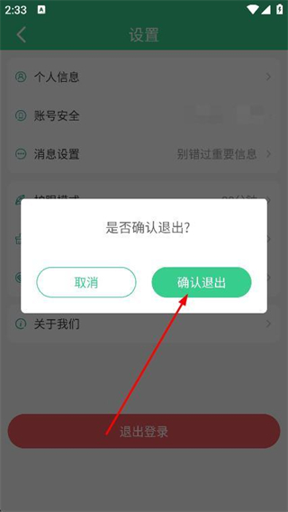 4、在提示窗口中,点击确认退出,完成账号退出操作。