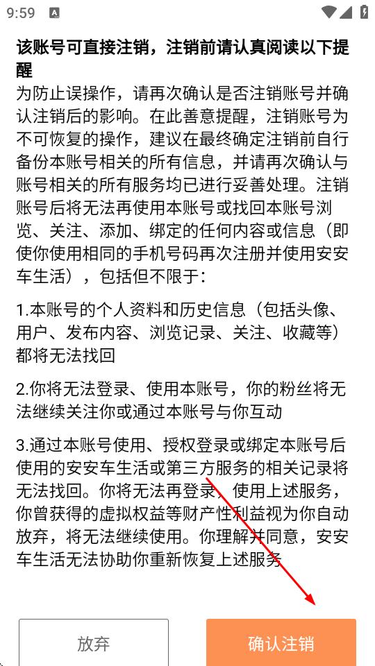 7、阅读注销账号提醒内容,确认要注销账号后,点击确认注销。