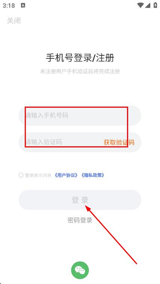 4、输入手机号和验证码,点击登录按钮,即可完成注册。