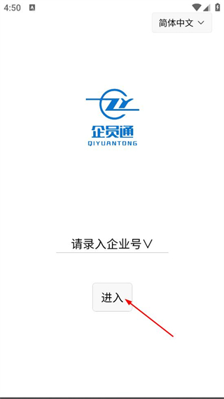 2、在企员通的企业号录入页面,填写对应的企业号后,点击进入,进入登录页面。