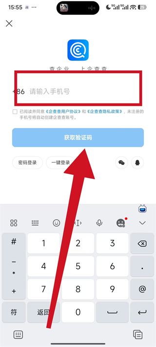4、在验证码输入页面,将收到的短信验证码填入对应输入框,完成企查查账号的登录操作。