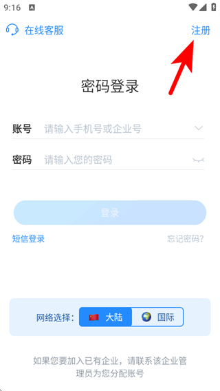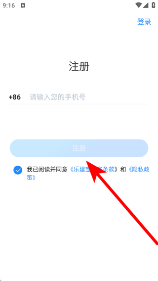 1、打开乐建宝APP,在登录界面点击右上角注册。