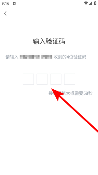 3、进入输入验证码页面,输入收到的4位短信验证码。