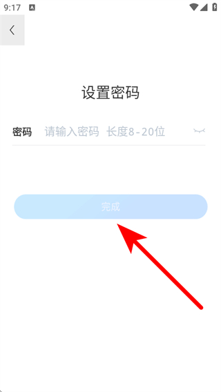 4、进入页面设置密码,点击完成,即可完成账号注册操作。
