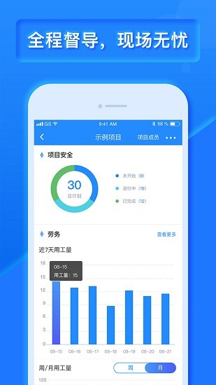 1、实现无纸化办公目的,在记录项目数据的时候,都不用手动记录详情;