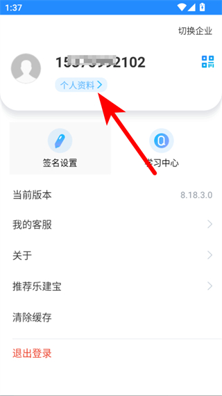1、打开乐建宝APP,点击右上角个人图标,进入个人页面。