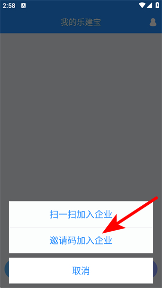 2、在弹出的选项栏中,选择邀请码加入企业这一加入方式。