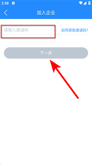 3、进入页面在输入框填写邀请码后,点击下一步推进后续流程。