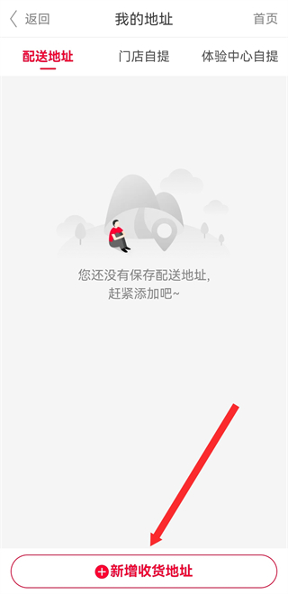 3、在我的地址页面,点击新增收货地址,进入新增收货地址页面。