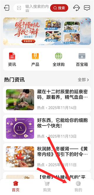 1、在无限极的首页,点击底部我的按钮,进入个人页面。