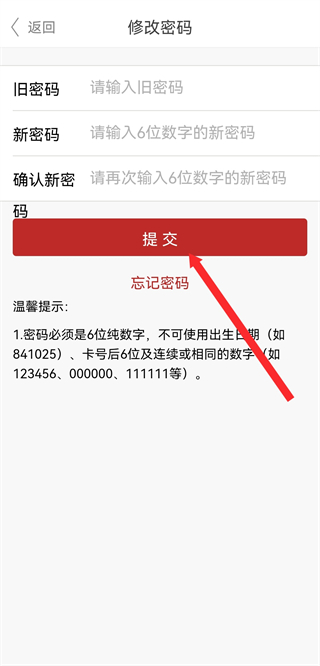 3、进入修改密码页面,输入密码点击提交,完成密码修改操作。