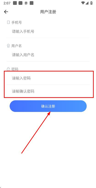 3、在用户注册页面填写密码后,点击确认注册完成注册操作。
