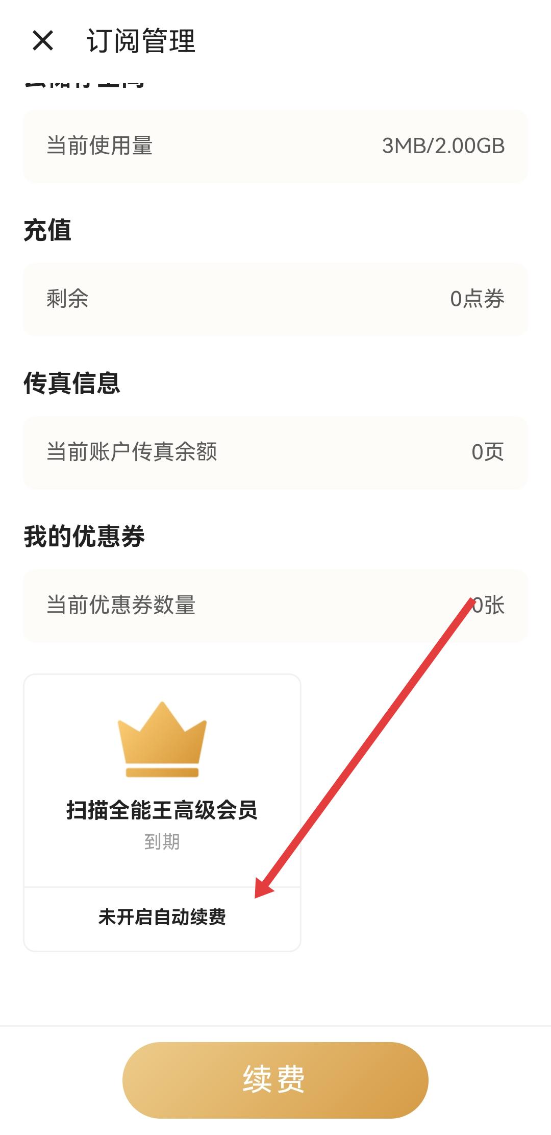 3、若显示自动续费中,需要点击该板块跳转至支付平台,按平台指引取消自动续费,若显示未开启自动续费,则当前已关闭续费。