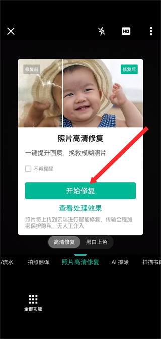 4、进入照片高清修复界面后,点击开始修复,完成模糊照片的修复操作。