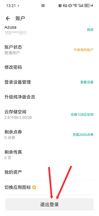 3、进入账户页面后,找到退出登录按钮并点击,触发退出确认提示。