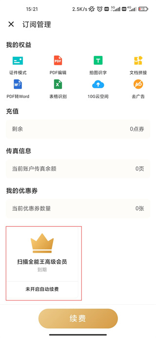 2、管理自动续费,一键关闭扫描全能王高级会员