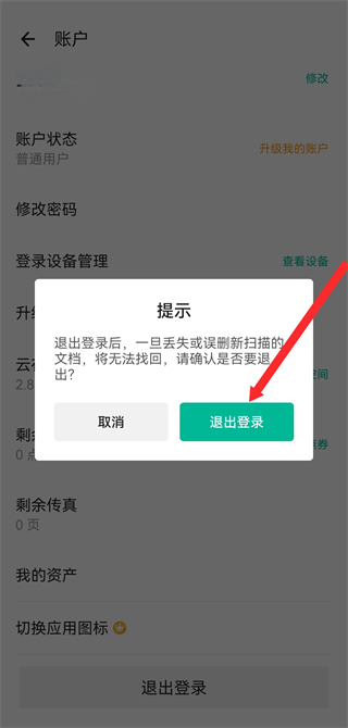 扫描全能王怎么退出登录