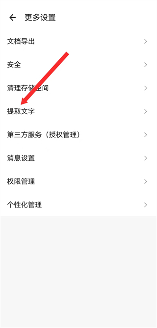 3、在更多设置的页面,我们需要找到并且点击提取文字。