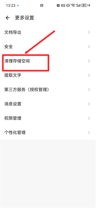 3、进入更多设置页面后,选择清理存储空间选项,进入缓存清理的专门页面。