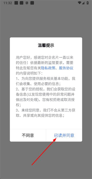 1、在使用协议隐私政策弹窗中点击已读并同意按钮,进入登录页面。