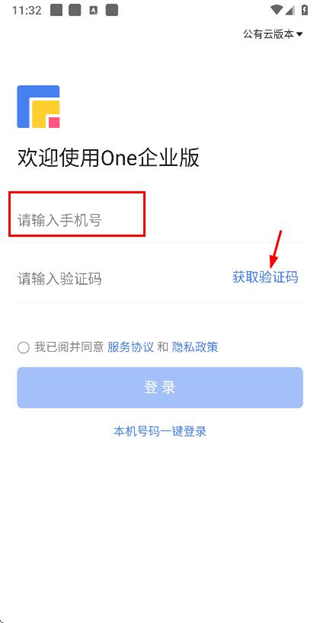 2、在手机登录页面填写手机号,勾选协议后,点击获取验证码。